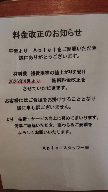 | 店名 | 美容室 Apfel(アプフェル) |